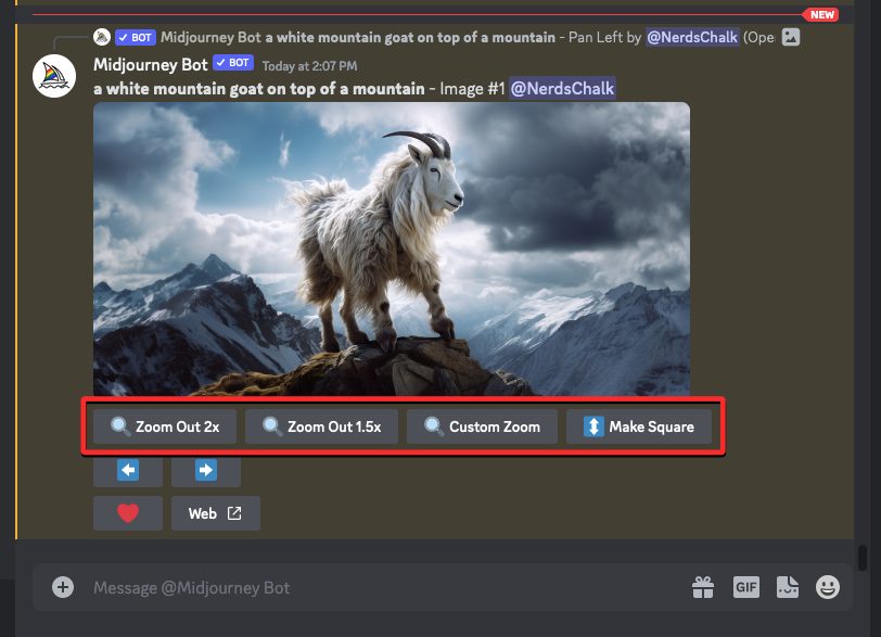 Clicking on any of these available pan options will request Midjourney to create a panned image with an increased resolution and a different aspect ratio than the upscaled image you generated earlier.