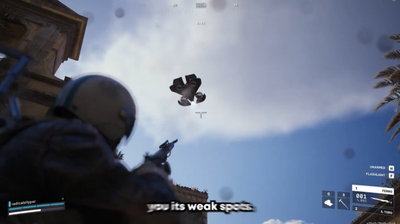 The front-facing fans are one of the easiest weak points to hit — but only when you are positioned underneath the Firefly. From below, you get a clear angle to shoot directly into the exposed fan blades.