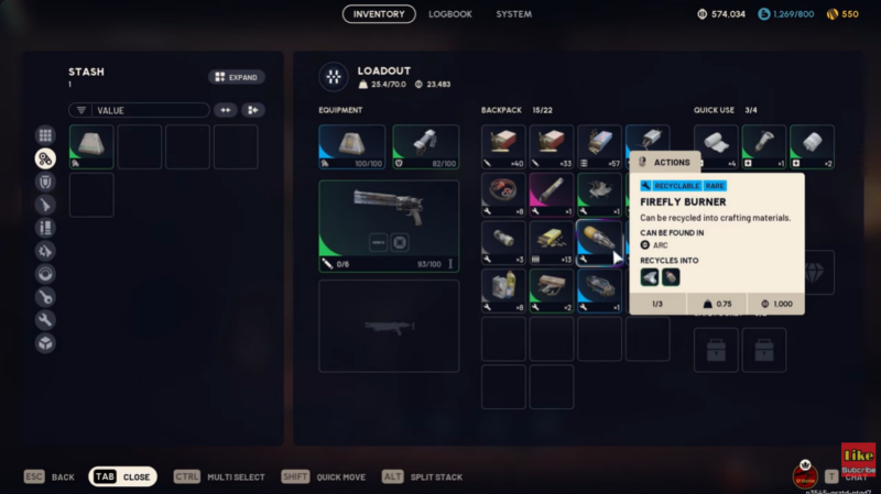Firefly Burner crafting and recycling value
