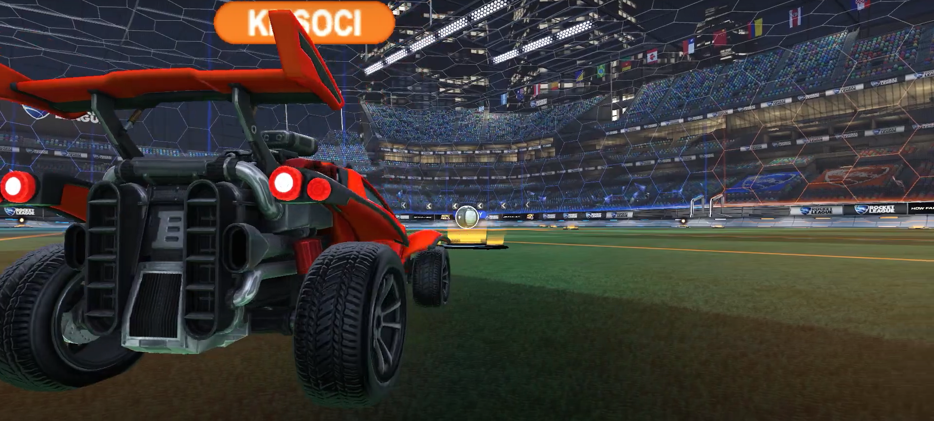Boosts: this is a new brainer but as a new player you should keep an eye on all the boost pads currently available in the match. More often than not, one will always be in your path to the kickoff. Helping realize the size limits of these pads will help you gain boost during your run-up while aiming your car just right to hit a shot at the goal. This will need some practice but is quite easy to master.