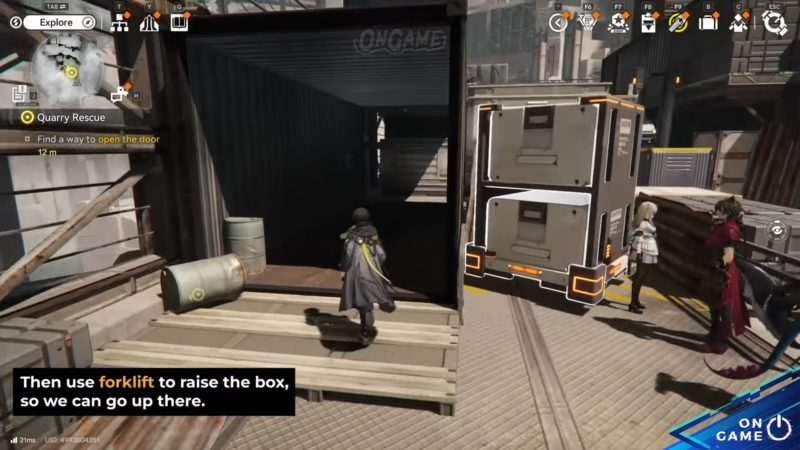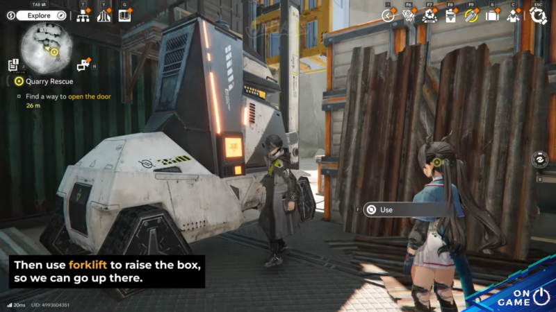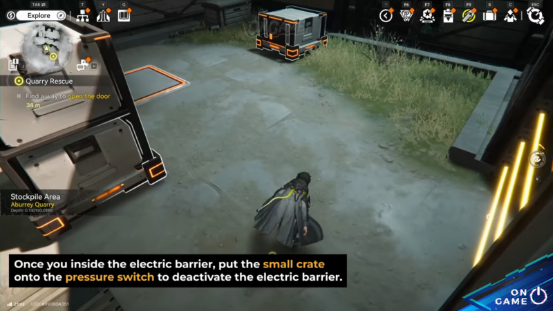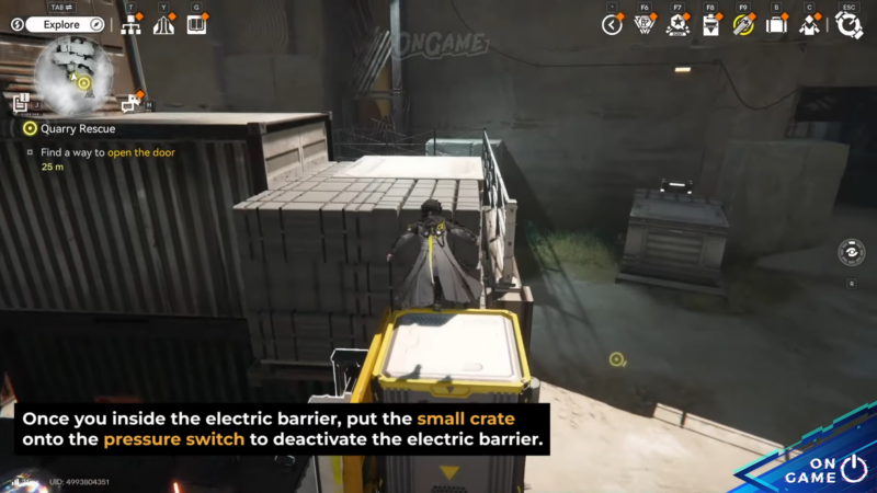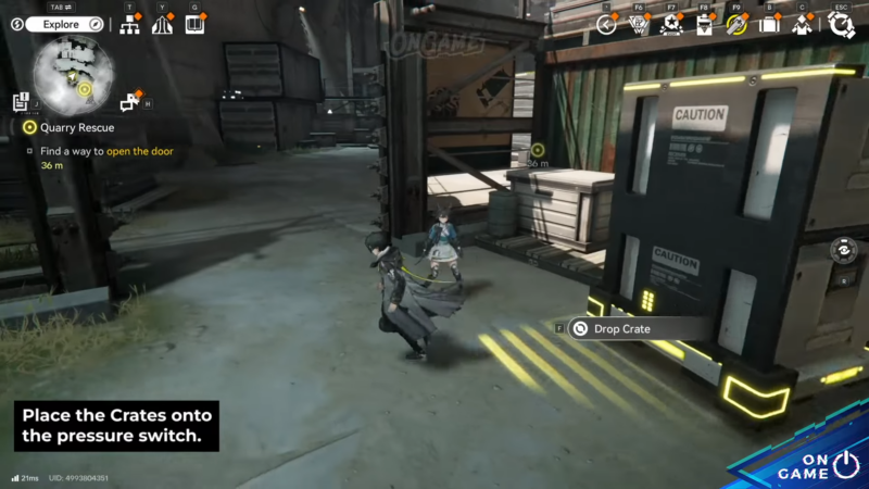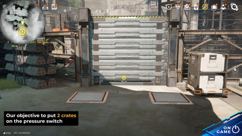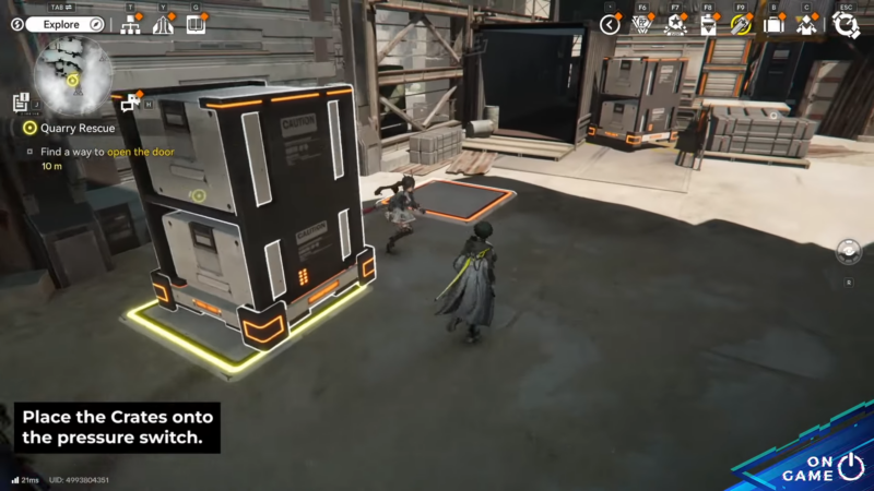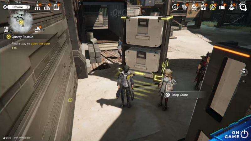 This objective looks like it wants a key item, but it’s really a compact “move objects to switches” puzzle built around the quarry’s machinery and crate physics. The goal is simple: get two tall crates to the door pads—everything else is just the route to make that possible in Arknights Endfield.