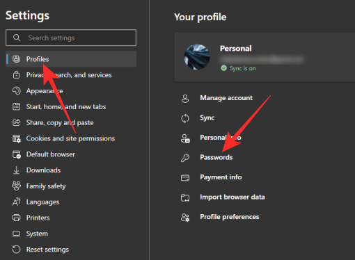 Now, select the ‘Profiles’ tab on your left and select ‘Passwords’ on the right.