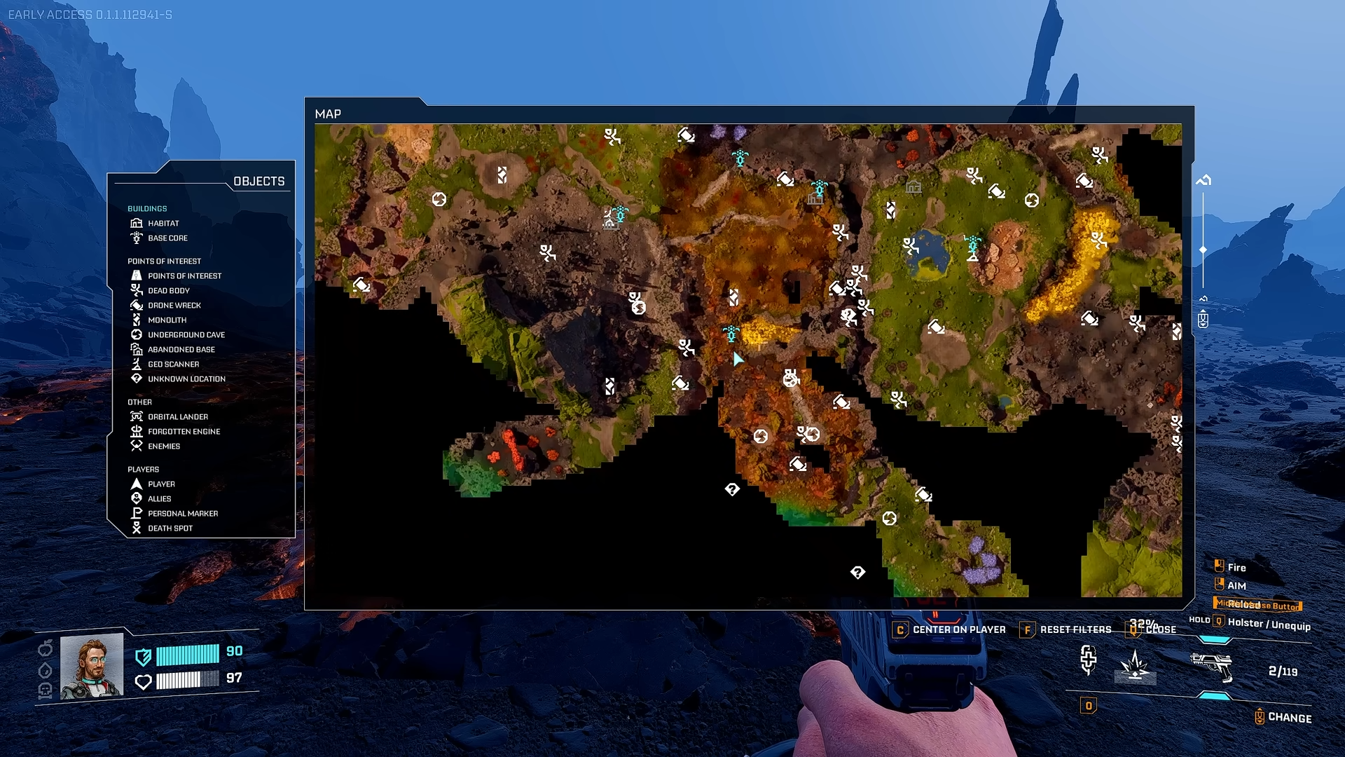 Head north from the Orbital Lander past Griffith’s Research Outpost into barren terrain for early veins, where three to five nodes cluster near titanium spots. Northeast mountainous regions pair sulfur with large calcium deposits, ideal for multi-resource runs. Far north edges host bigger groups amid radiation risks, while community maps note 12 verified zones in scorched, cracked biomes—toggle interactive tools in-game for overlays.​