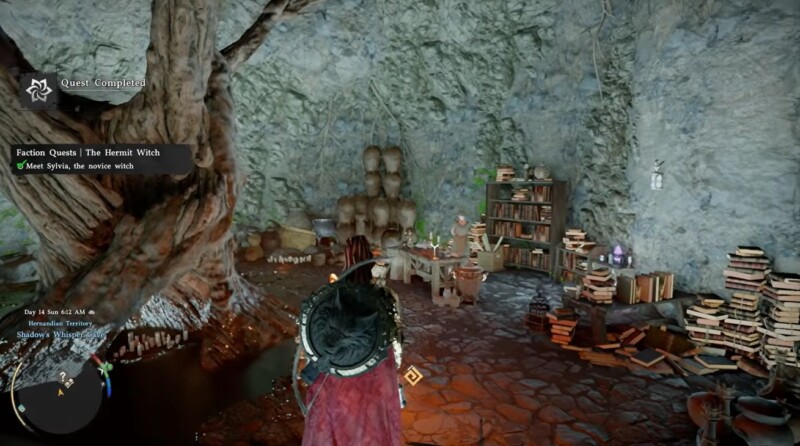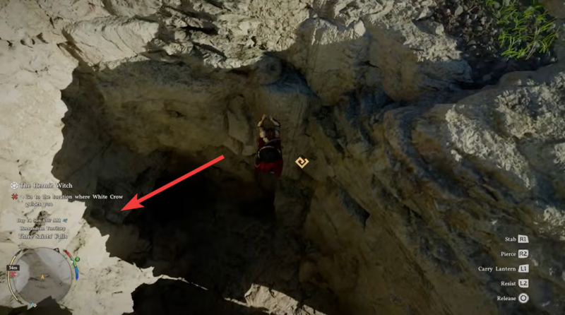 Continue through the ravine until you reach the Hermit Witch’s location. At this point, the objective should update, confirming you’ve found the correct path.