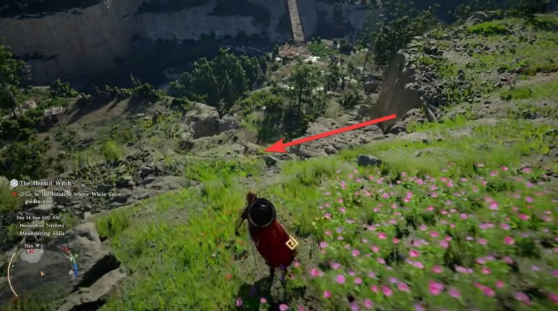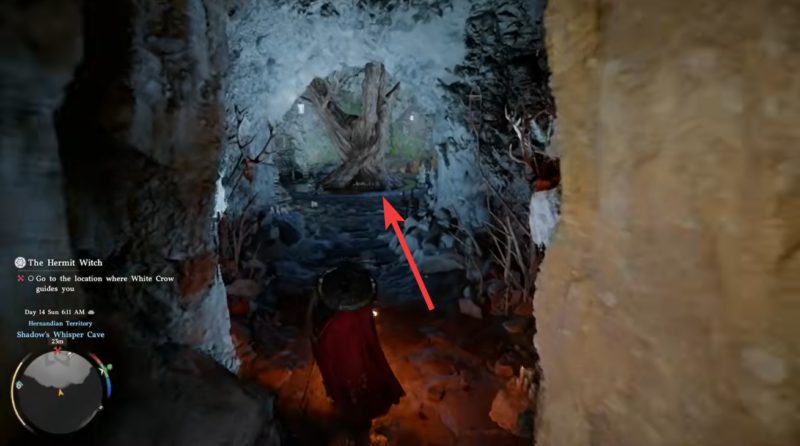 - The white crow acts as your main guide, leading you to the Hermit Witch’s hidden location.