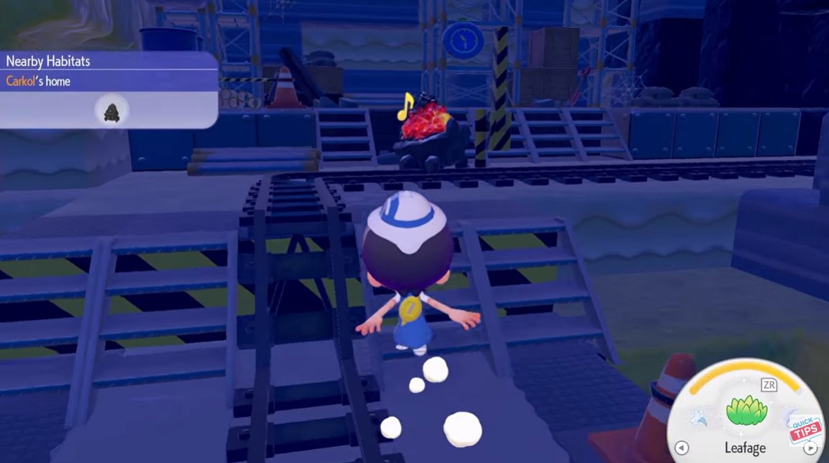 The lantern can be found inside Carkol’s habitat area, which is connected to the region near the Pokémon Center. From the center, you simply follow the railroad tracks running through the environment until you reach a small interior room within the habitat. Inside that room, you will see several lanterns placed on tables and crates. These are not locked or hidden, meaning you can pick one up immediately and start using it for cave exploration.