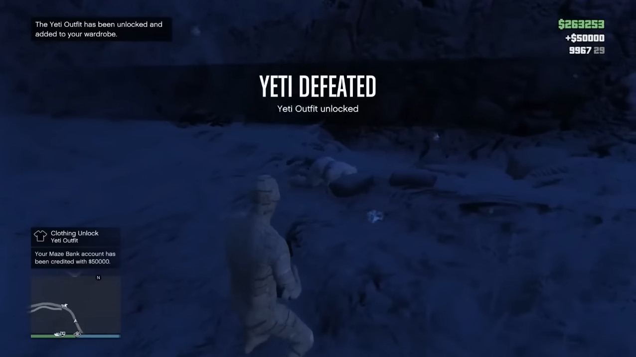 The Yeti Hunt is part of GTA Online’s seasonal events, usually running around the holidays. It’s a hunt in the snowy hills of Raton Canyon, where you follow a series of clues to track down a Bigfoot‑style Yeti and earn a unique outfit plus a $100,000 cash.
