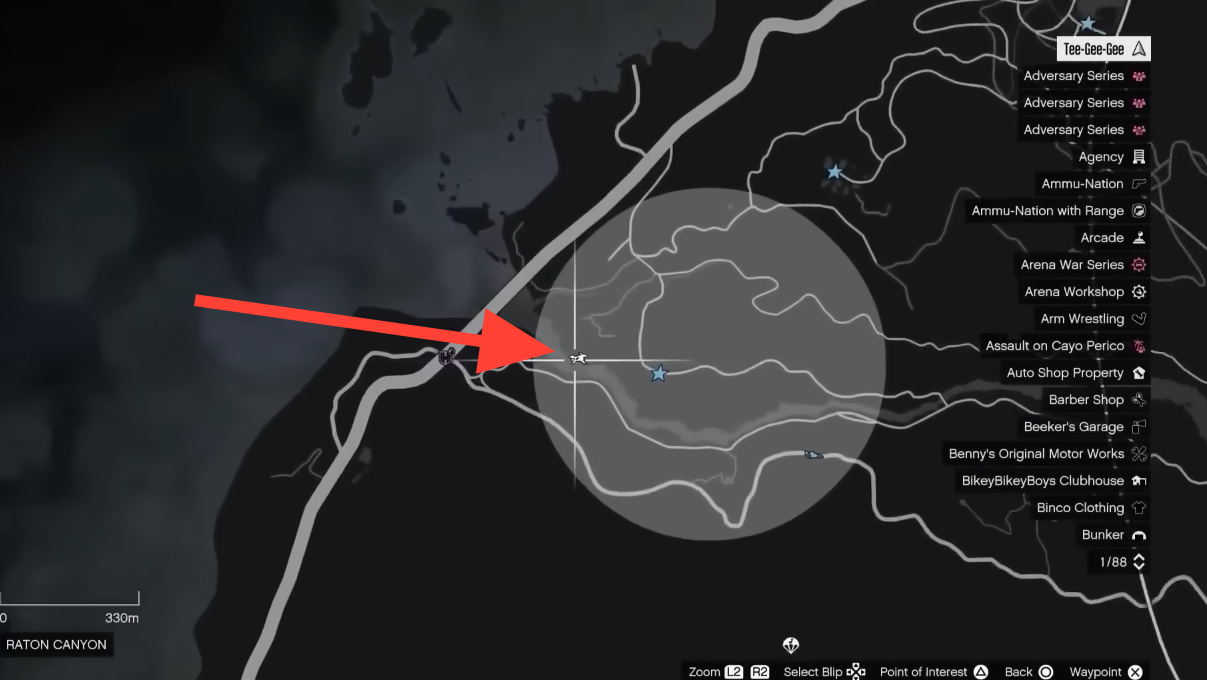 Once you’ve collected all the clues, the Yeti will only appear at night, between 9 PM and 6 AM in-game. Look for the red skull icon or marked circle on your map in Raton Canyon, then travel there on foot or by vehicle, enter the circle, and the Yeti will spawn and attack you.