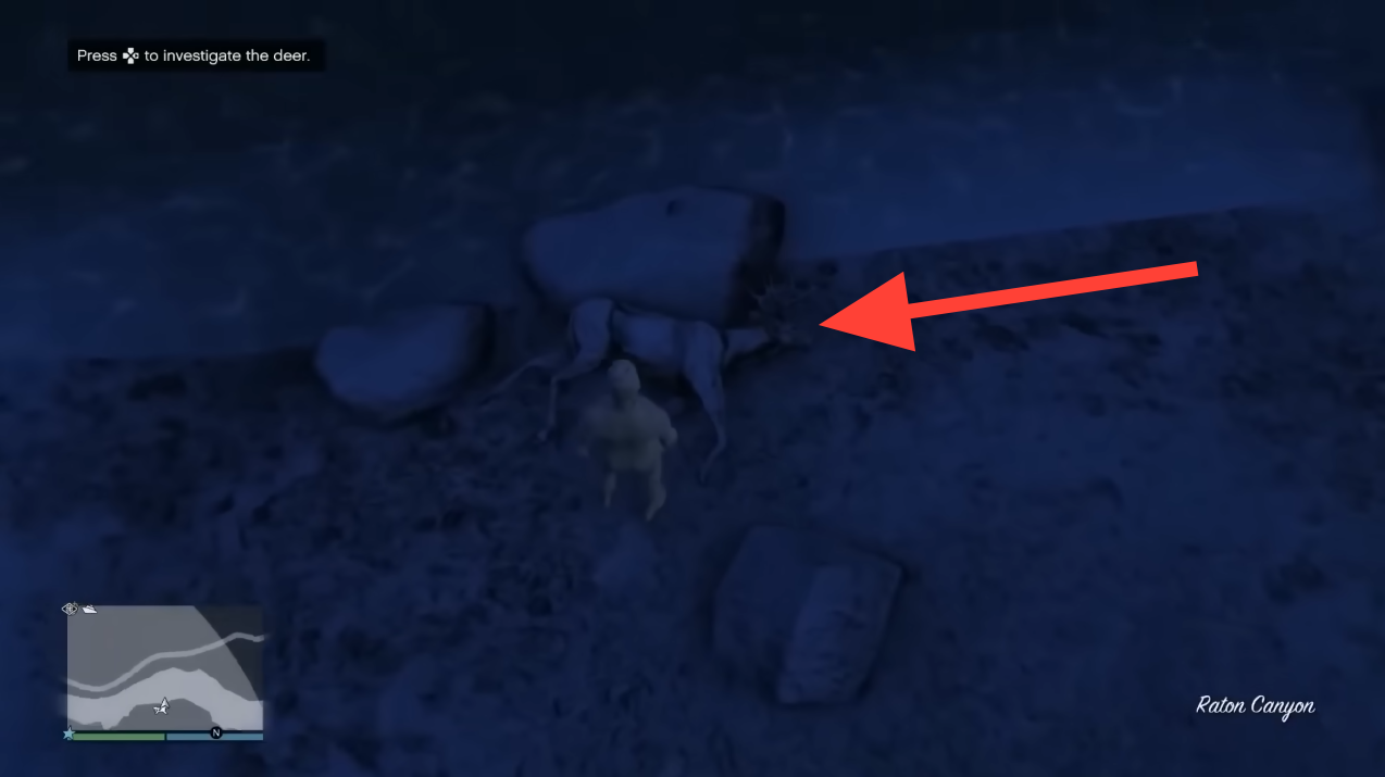 First Clue- Deer Carcass in the Yeti Hunt (Image credit: Rockstar Games | Via: YouTube - TGG)
