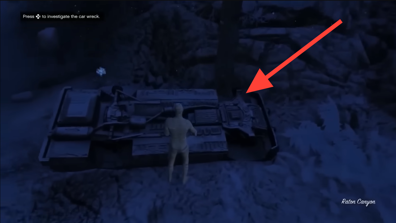Third Clue- Car Wreckage in the Yeti Hunt (Image credit: Rockstar Games | Via: YouTube - TGG)