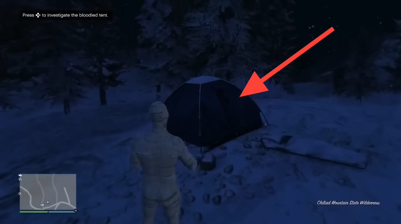 Fourth Clue- Bloodied Tent in the Yeti Hunt (Image credit: Rockstar Games | Via: YouTube - TGG)