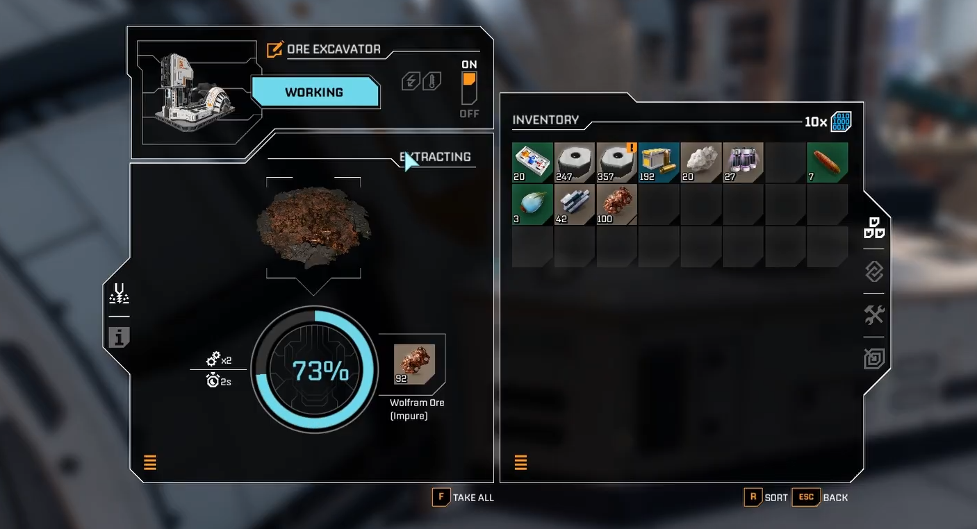 - Wolfram is the most common early ore, found in surface veins, loose rocks, and meteors around the Orbital Lander, north, and northeast.