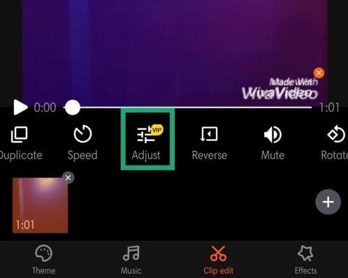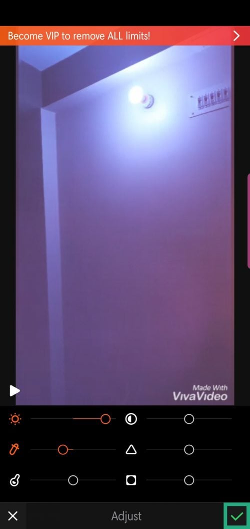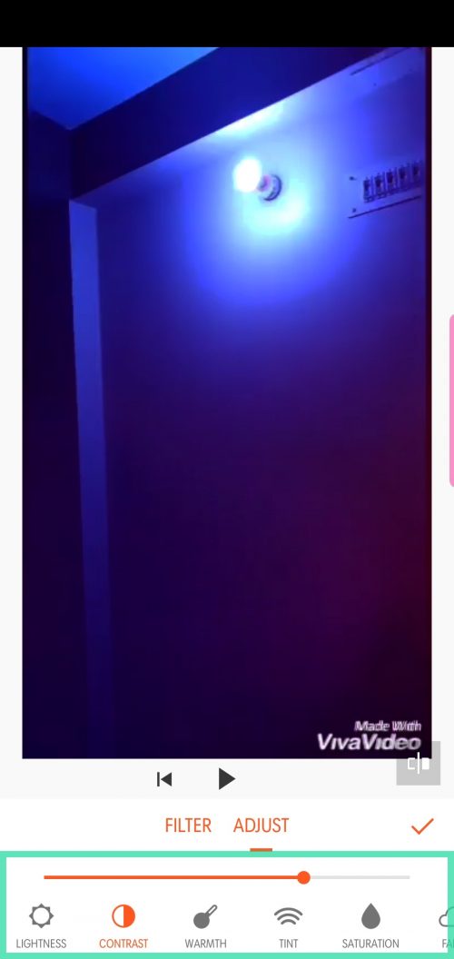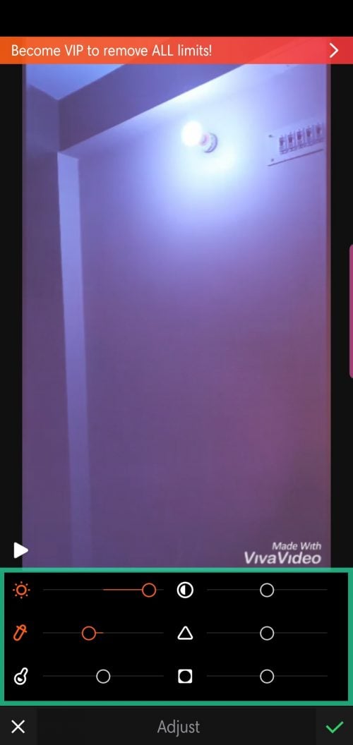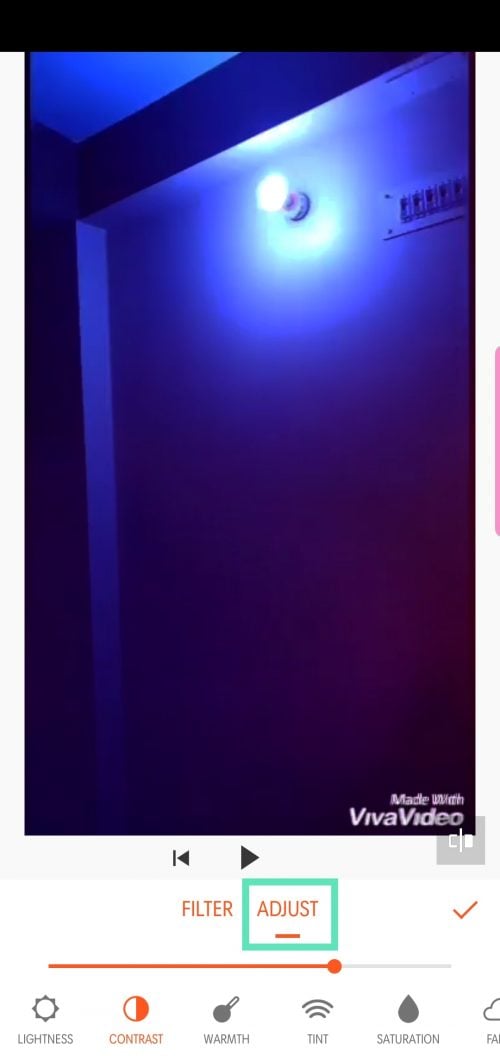 Step 6. Tweak brightness, contrast, warmth, tint, saturation, fade, highlight, shadow, color, hue, sharpness, grain, and use vignette effect on your video.