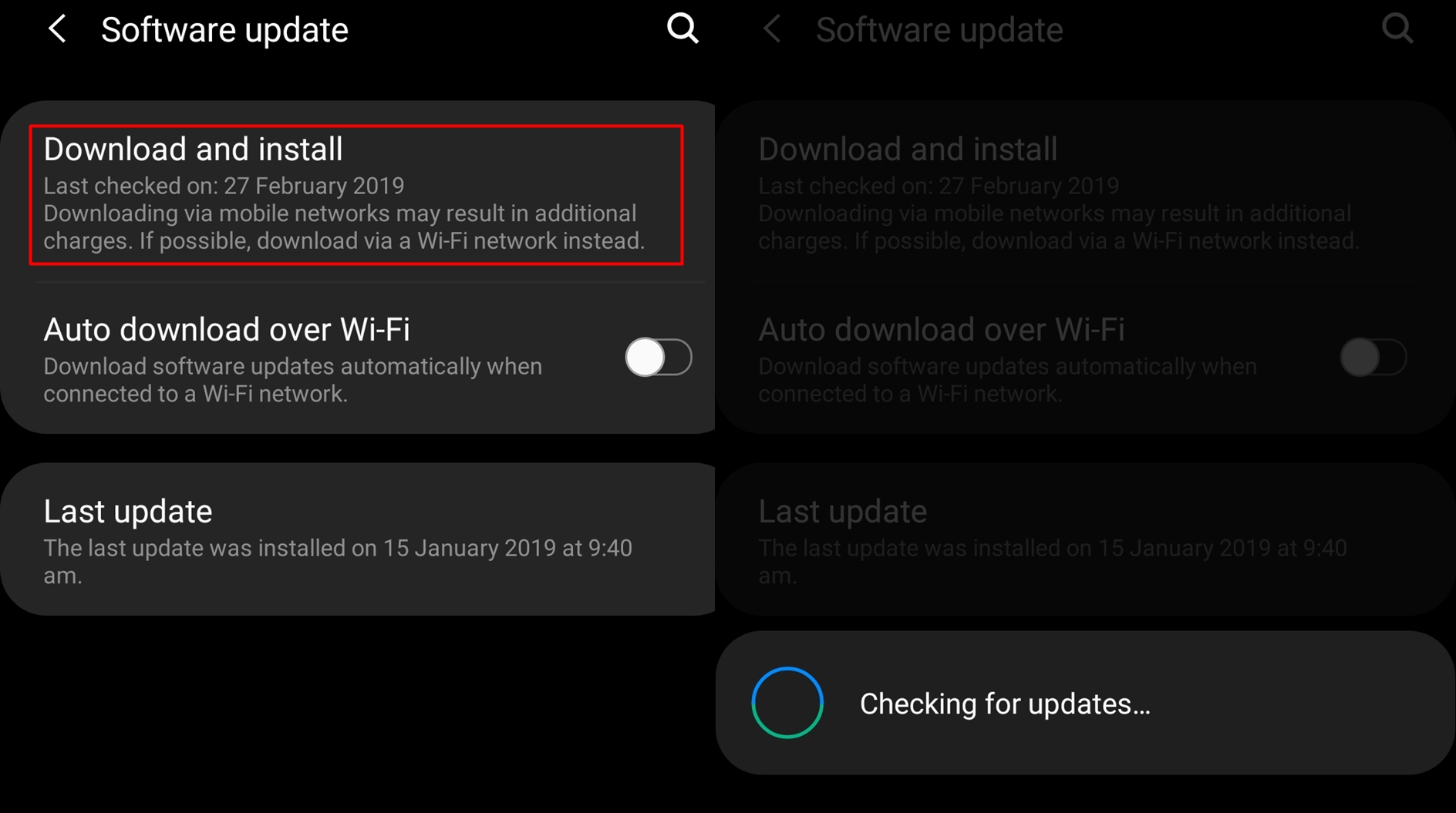 - Wait for the device to search for a new update.