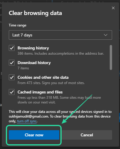 Finally, click on ‘Clear now‘ and Microsoft Edge will automatically clear the selected data for you.