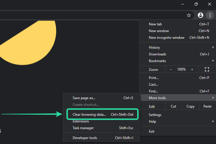 Select ‘Clear Browsing Data‘ from the submenu that appears.