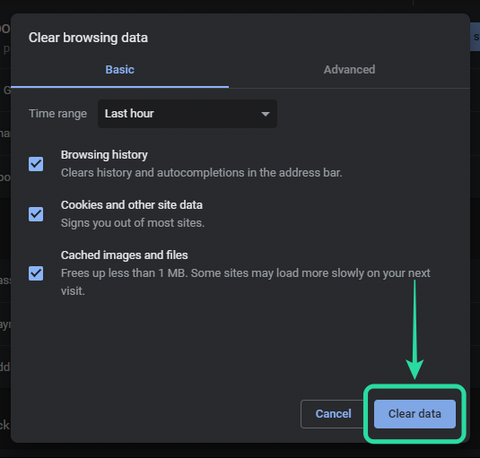 Finally, click on ‘Clear data‘ and Chrome will clear all your data including the Cache Files and Cookies.