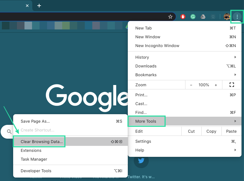 If neither of the two solutions mentioned above don’t work, then you can proceed to clear the entire cache on Chrome. You can do so by heading over to 3-dots icon > More tools > Clear browsing data, selecting All time and then hitting the ‘Clear data’ button.