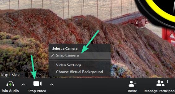 Step 3: Open the newly installed Zoom app and check if selecting a virtual camera like Snap Camera opens the video output through Snap.