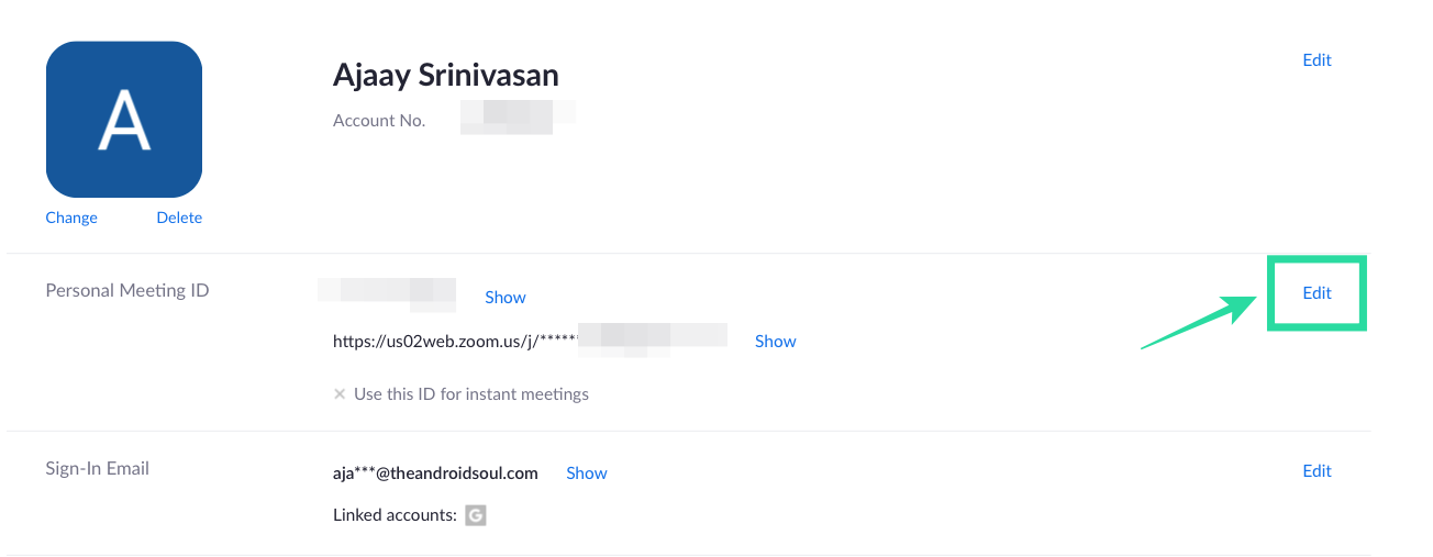 Step 2: Click on the Edit button adjacent to ‘Personal Meeting ID’.