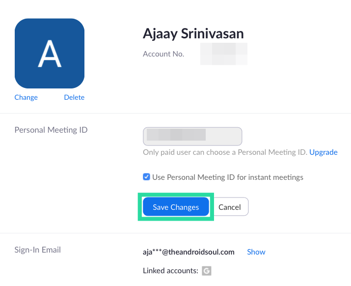 Step 5: Click on Save changes to save your new Personal Meeting ID and proceed to schedule new meetings with it.