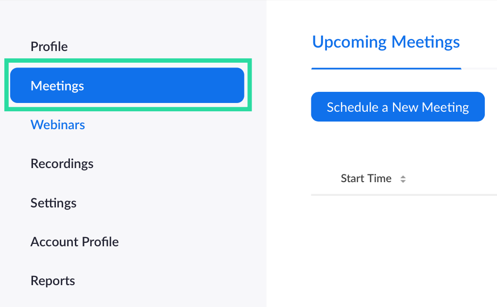 Step 1: Open your Zoom web portal and click the Meetings tab on the left sidebar.