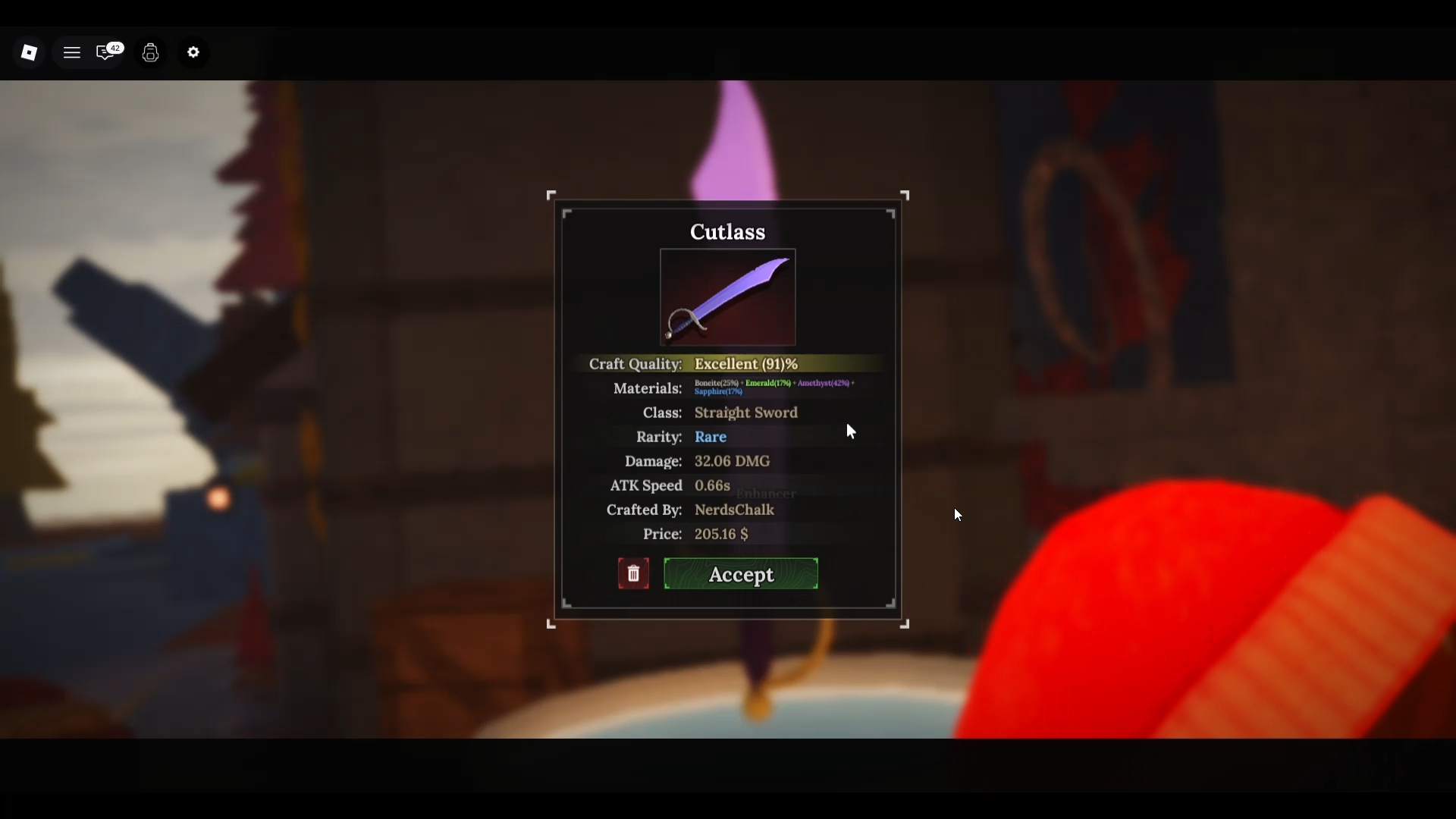 Cutlass is one of the Straight Swords in The Forge, classified as a mid-tier melee weapons. It has similar stats to other Straight Swords in the game though with highest best damage of all Straight Swords (tied with Chaos).