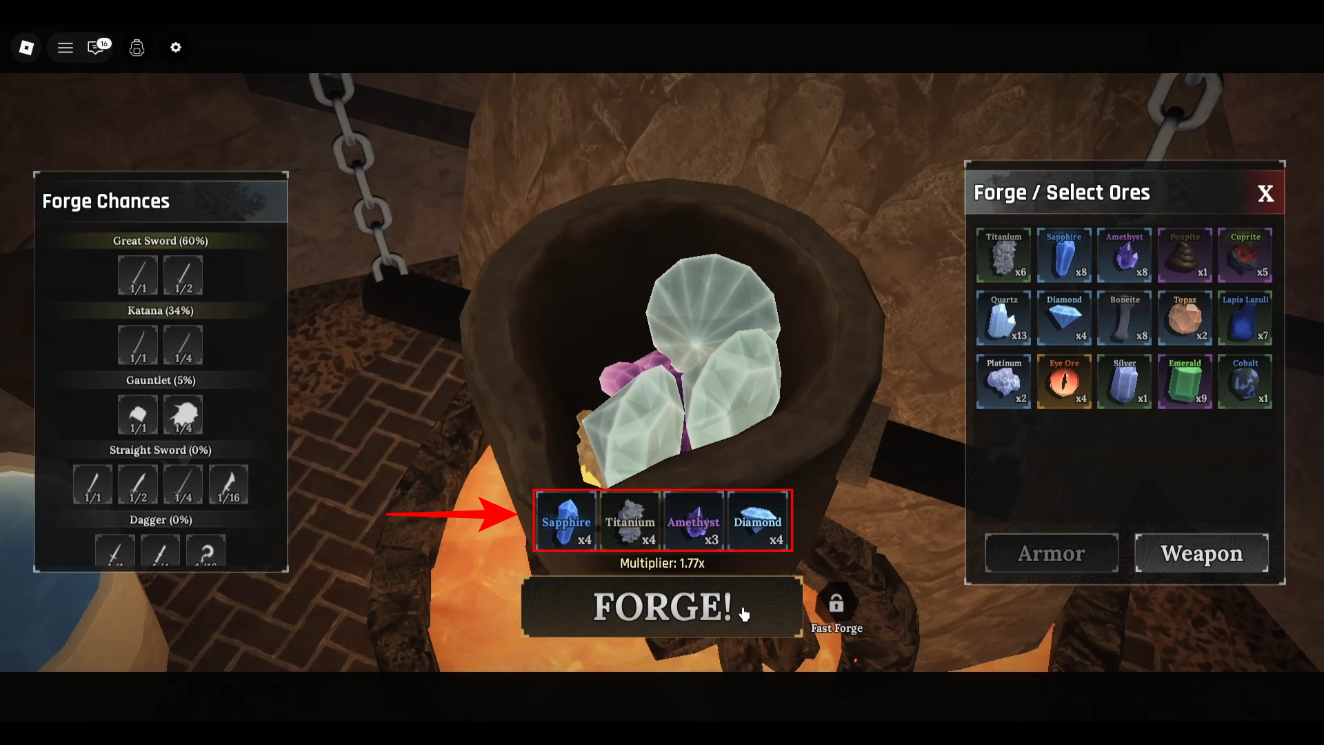 Crafting the Cutlass requires a blend of ores - 27% Sapphire, 27% Titanium, 20% Amethyst, and 26% Diamond. The ratios may vary based on your craft quality. So make sure to try out different combinations.