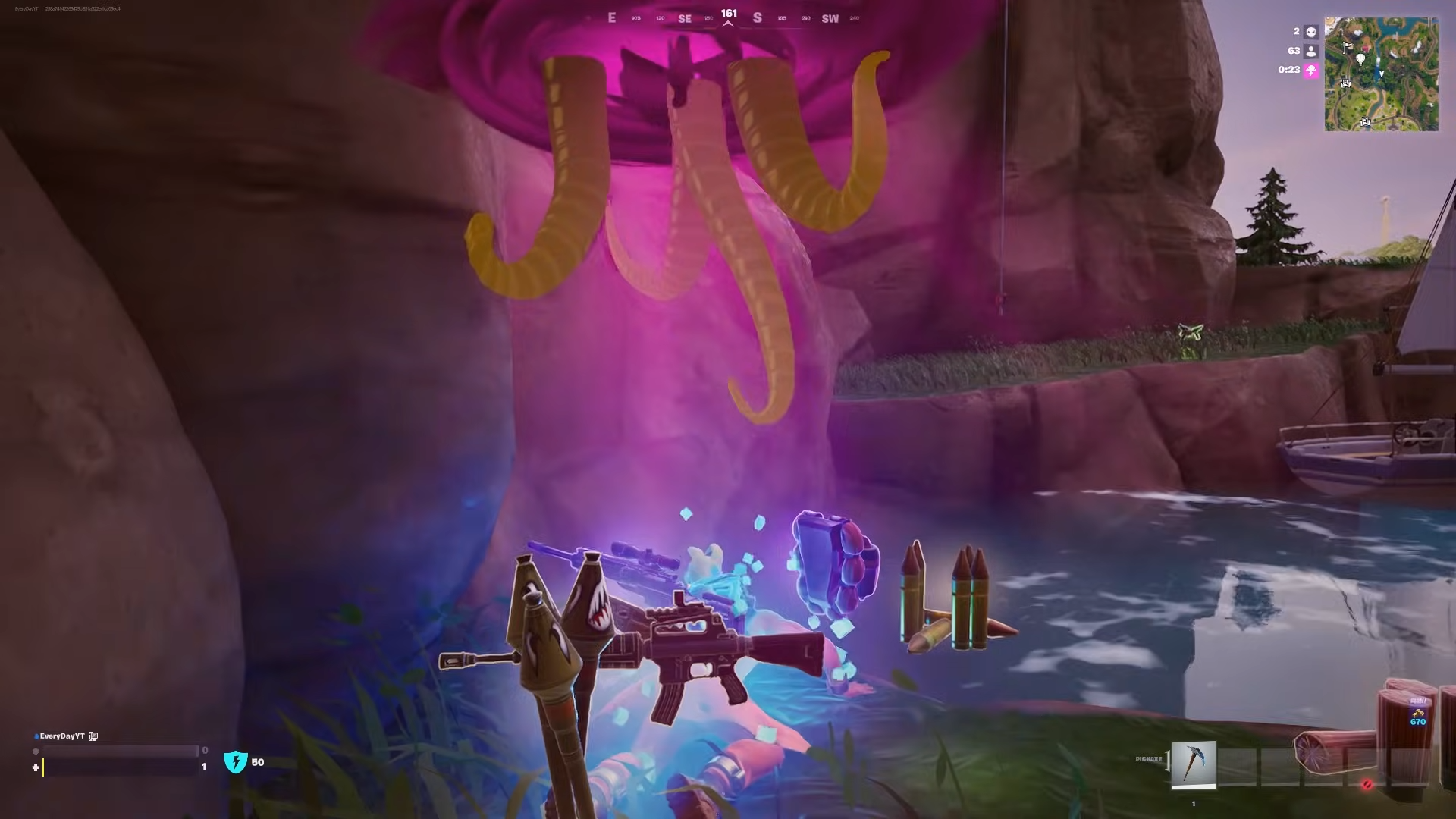 Carry it in your inventory for clutch moments. When downed and eliminated—by players, falls, or hazards—a purple portal spawns overhead. Tentacles yank you up, mimicking a Battle Bus drop, restoring full health but zeroing shields.
