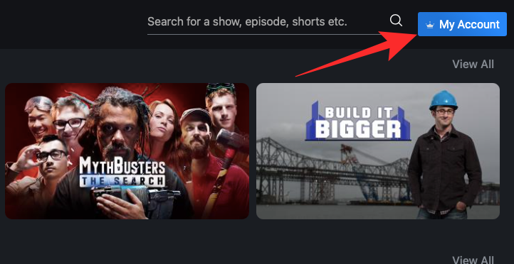 If you wish to access your Discovery Plus account details, click on the ‘My Account’ option at the top right.