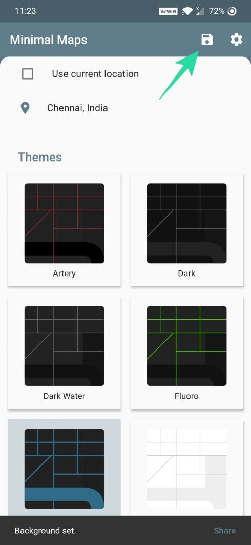 Step 3: Tap the Save button to save the selected wallpaper. You can also swipe and select different areas on the map.
