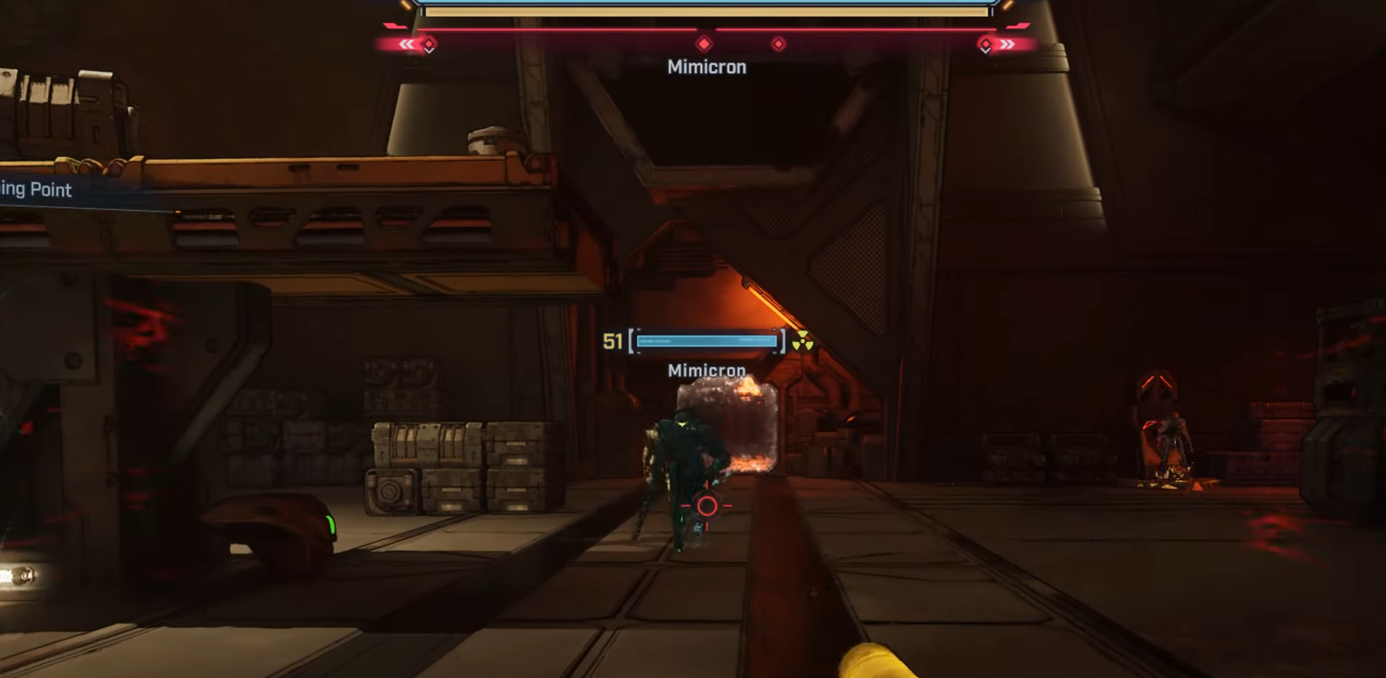 Explore the bunker and reach the Mimicron boss arena.