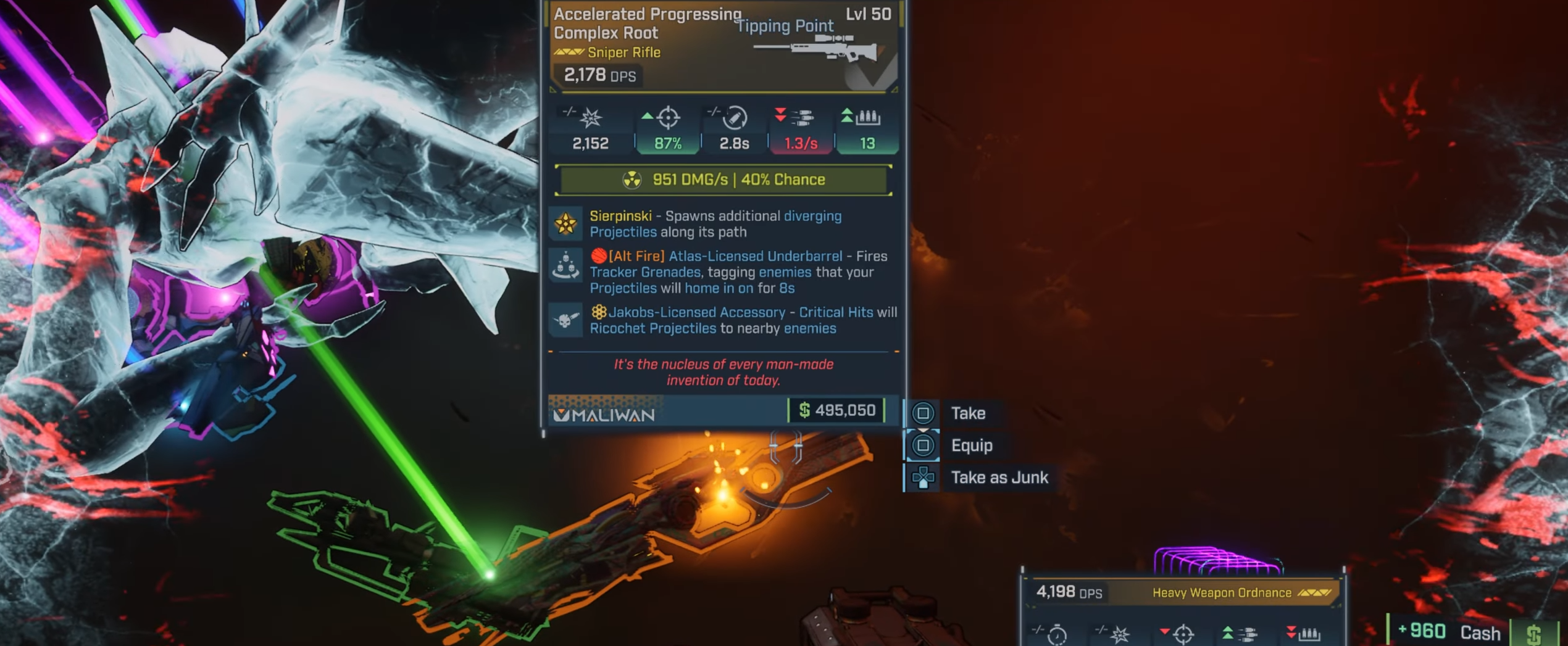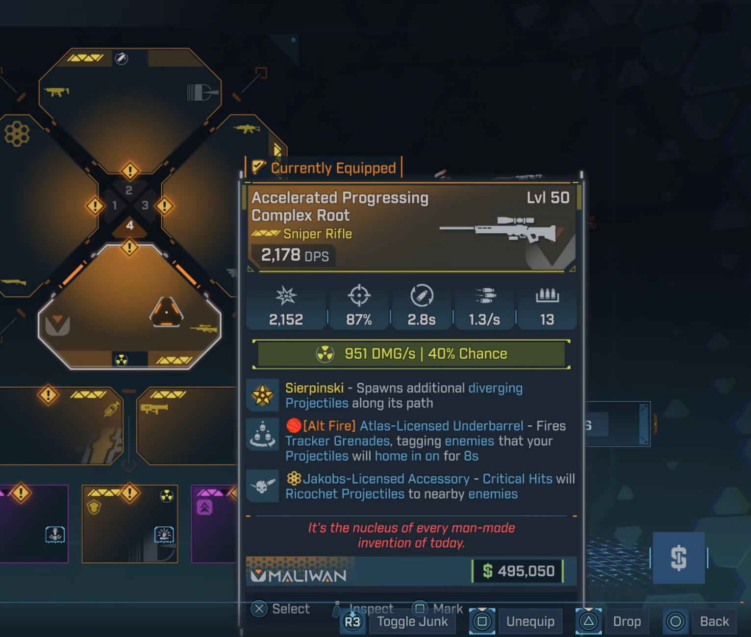 The Complex Root echoes its Borderlands 3 roots but evolves with Borderlands 4's overhaul, sporting the "Sierpinski" effect where bullets split into fractal-like paths for added coverage. Maliwan's corrosive base shines against armored foes, with elemental swaps available via anointments.