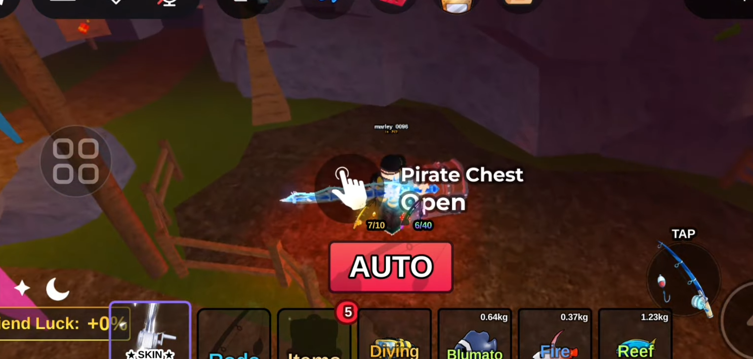 Start Dead Man’s Treasure by talking to the quest NPC in the pirate treasure room inside Pirate Cove in Fisch.