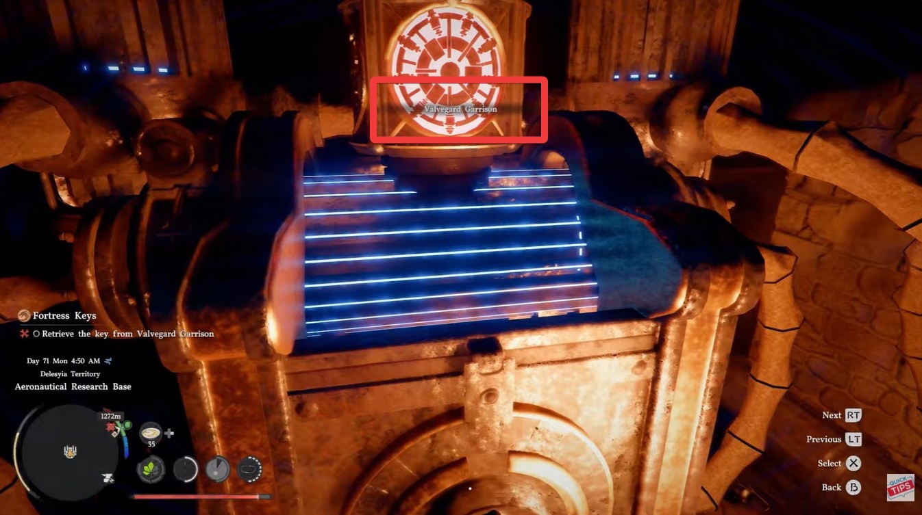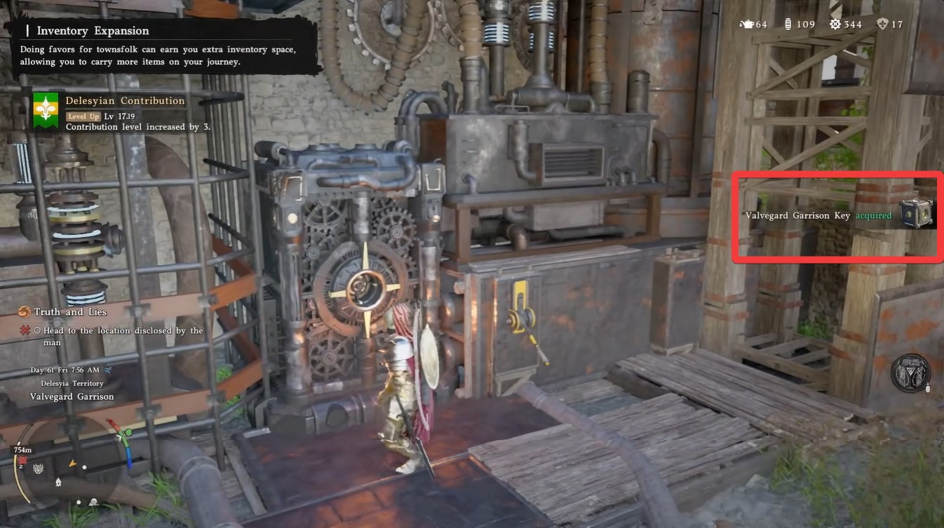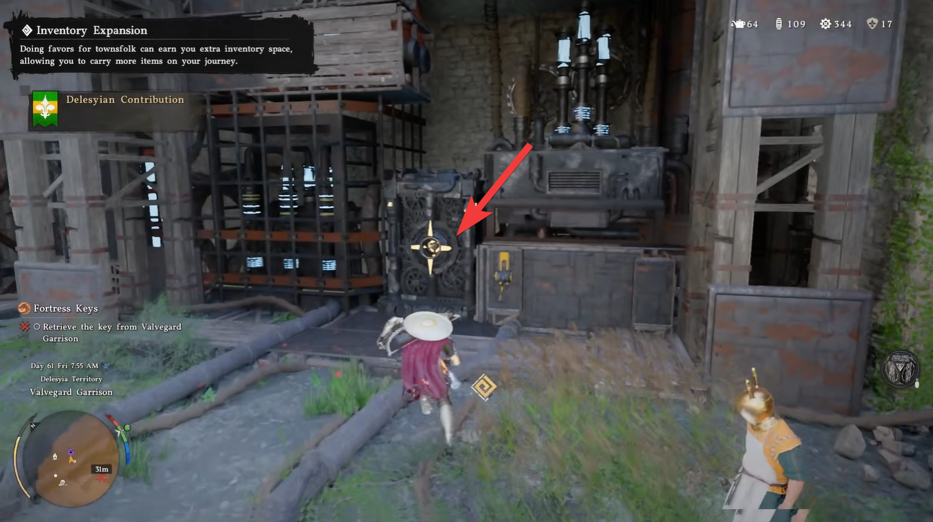 Interact with the objective marker to collect the Valvegard Garrison Keys.
