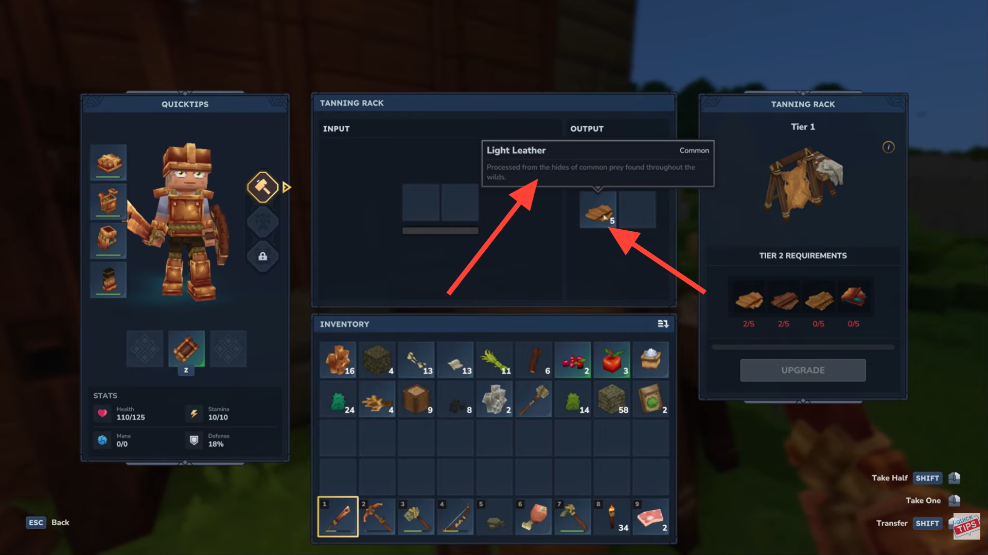 Place the tanning rack in your base. Interact with it and insert the light hide into the input slot.