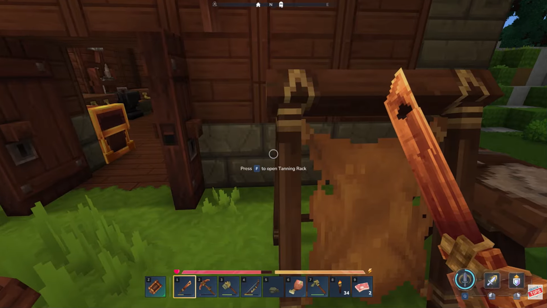 Go to a standard workbench and craft a tanning rack. The recipe requires: