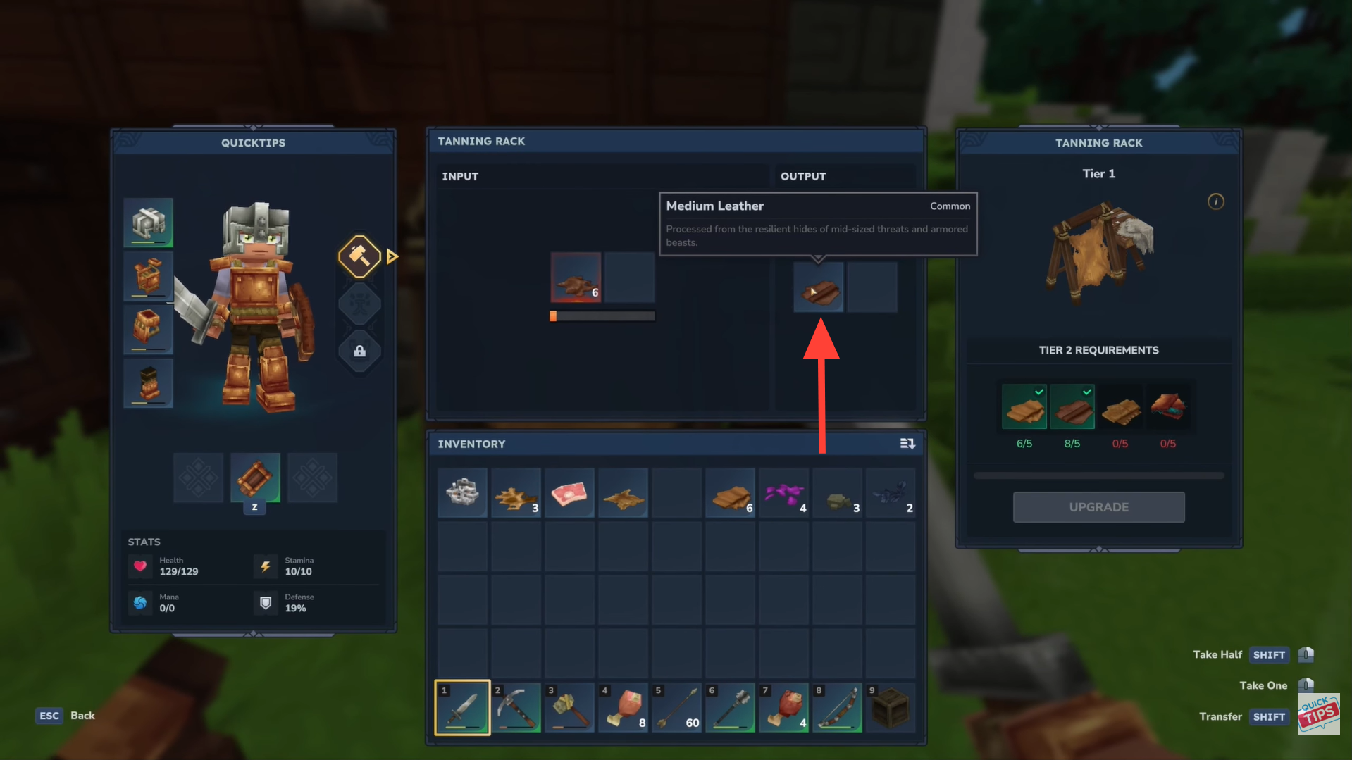 Turn medium hide into leather. Image credits: Hypixel Studios / YouTube: Quick Tips
