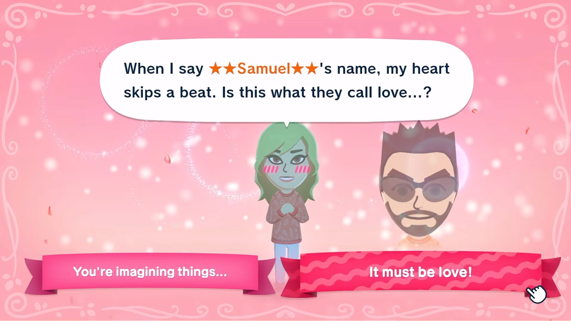 • Certain story scenes and repeated interactions can all but guarantee one Mii falls in love with another.