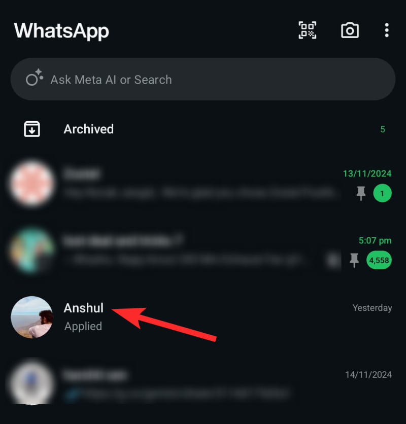 Step 1: Open WhatsApp on your device and navigate to the chat you want to prioritize.