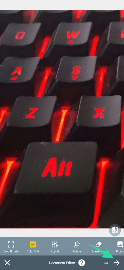 Step 6: In the next screen, you can edit the document and when editing is complete, tap on the right arrow icon at the bottom right.