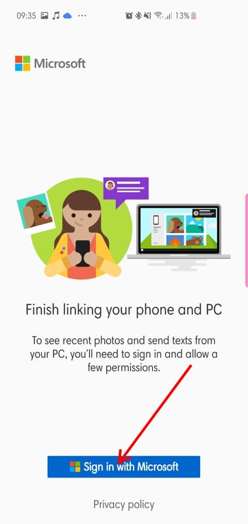Step 4: Sign in with your Microsoft account on both PC and phone.