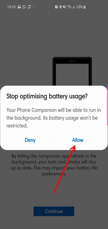 Step 6: When prompted, Allow battery optimization exception on your phone.