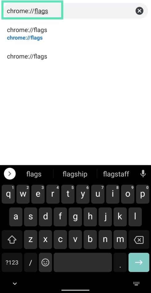 Step 2: Tap on the address bar at the top, type the following address and press the Enter key on your keyboard. The Chrome flags page will now load up on the screen.