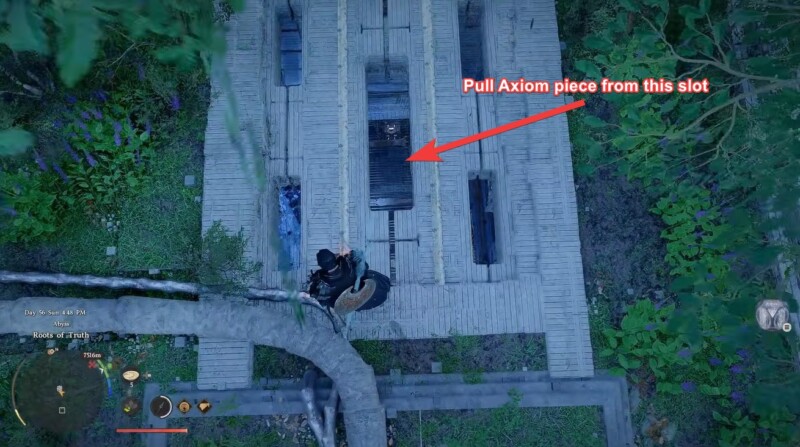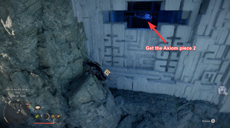 Once you reach the topmost area, find an opening from where you can spot your first Axiom piece. You need to carefully pull it out.