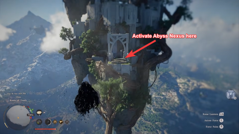 Reach the central Abyss activation point and use Force Palm to hit the center. This will activate the Roots of Truth Abyss Nexus.