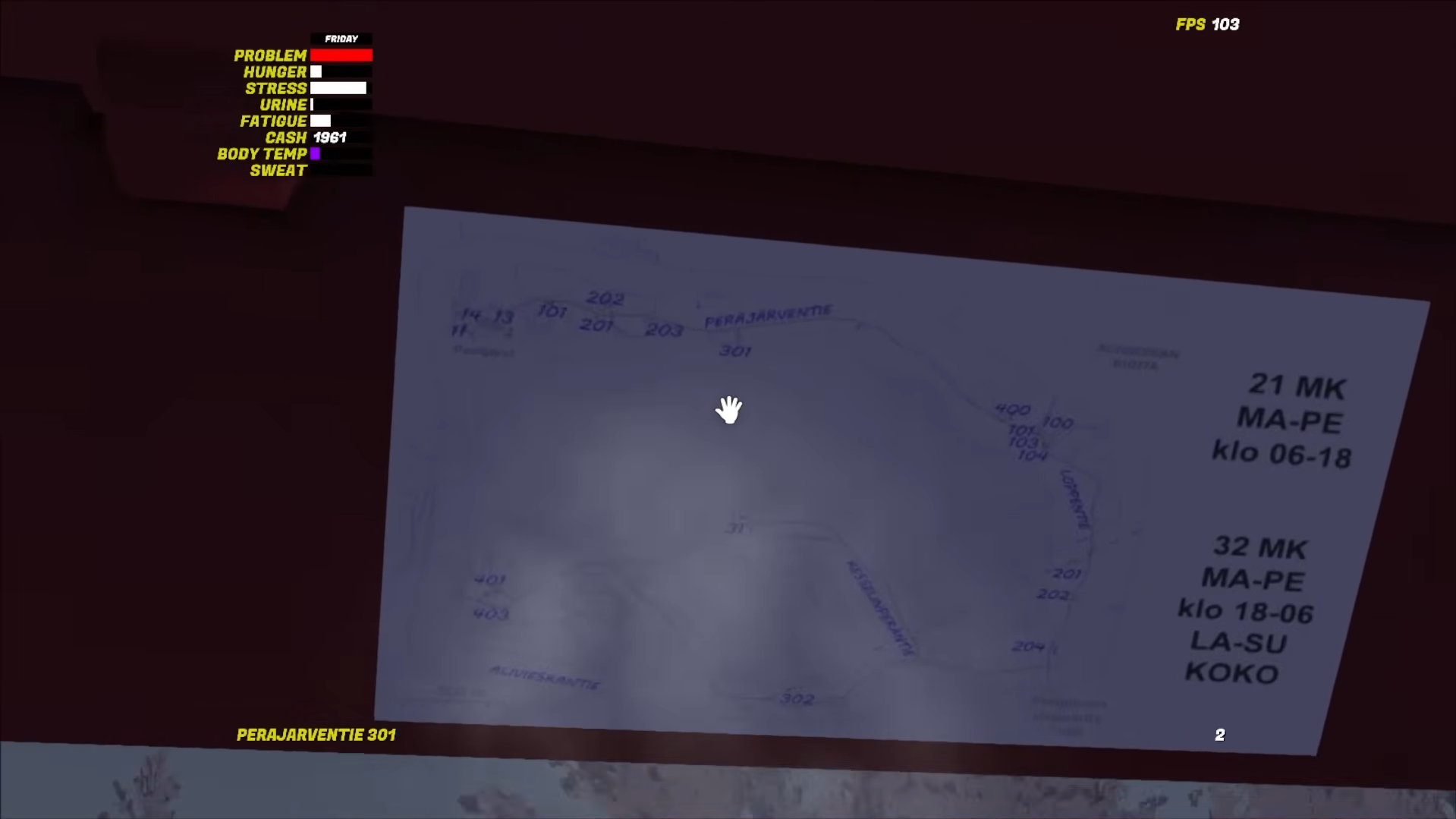 When your phone rings, answer the call and note the pickup address the caller gives you (for example, “Loppentie 100”), as you’ll need it to locate the customer. Make sure not to hang up early, as cutting the call before the dialogue finishes will prevent the customer from spawning.