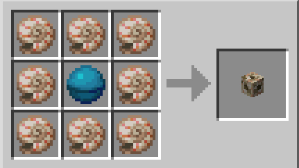 Let’s start by making the conduit first. Gather all the items mentioned above in your inventory and head over to your crafting table to access the 3×3 crafting grid. Start by placing the ‘Heart of the Sea’ in the middle slot of your crafting grid and surround it by 8 nautilus shells.