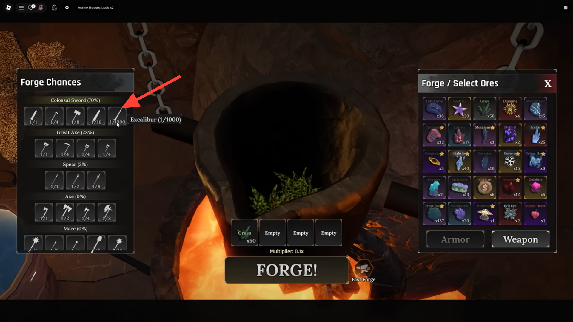 How to get Grass Excalibur when forging
