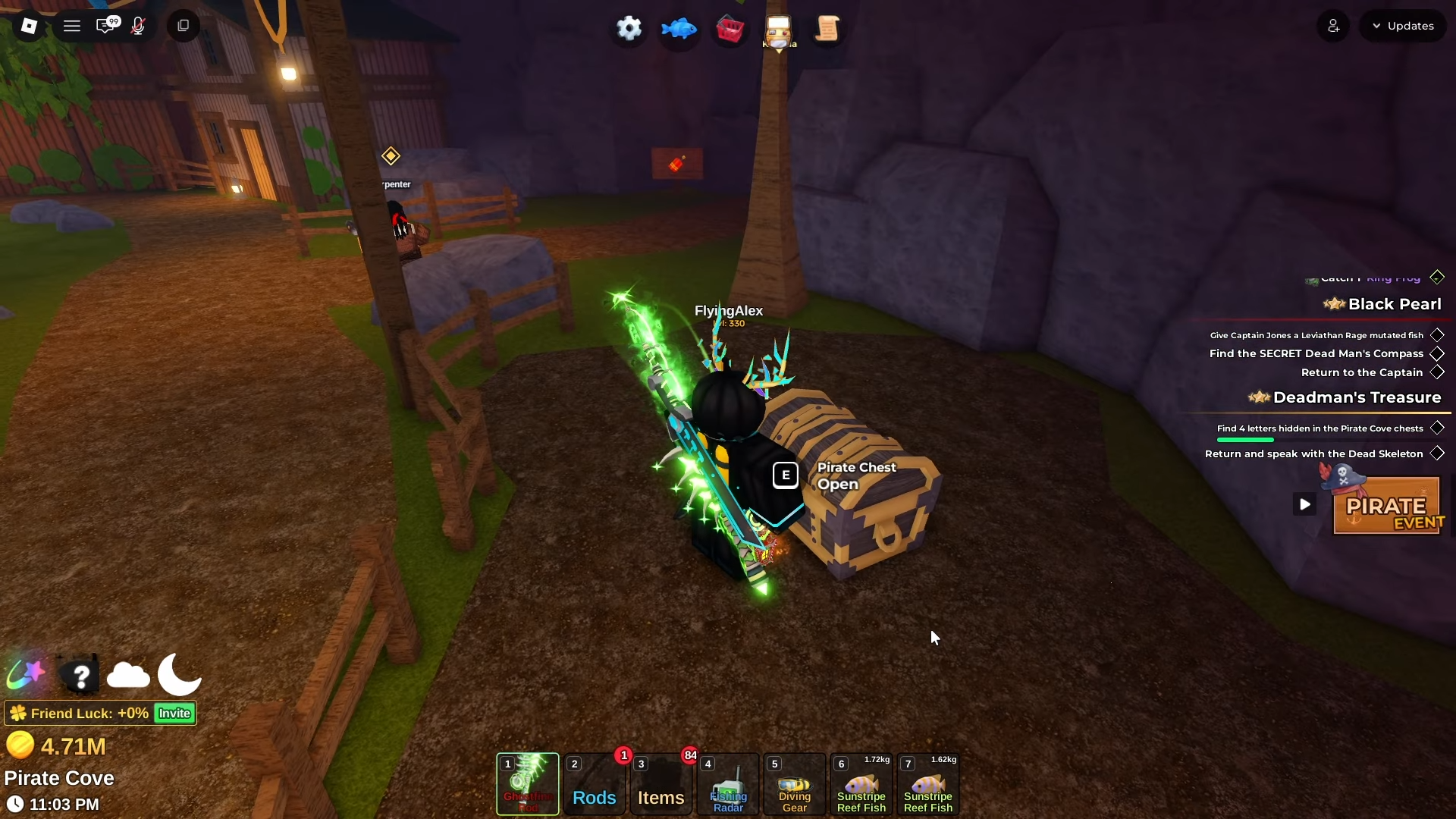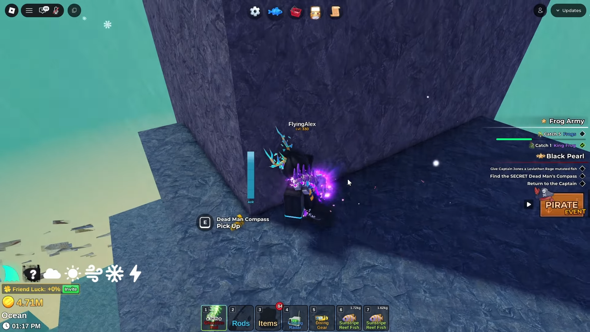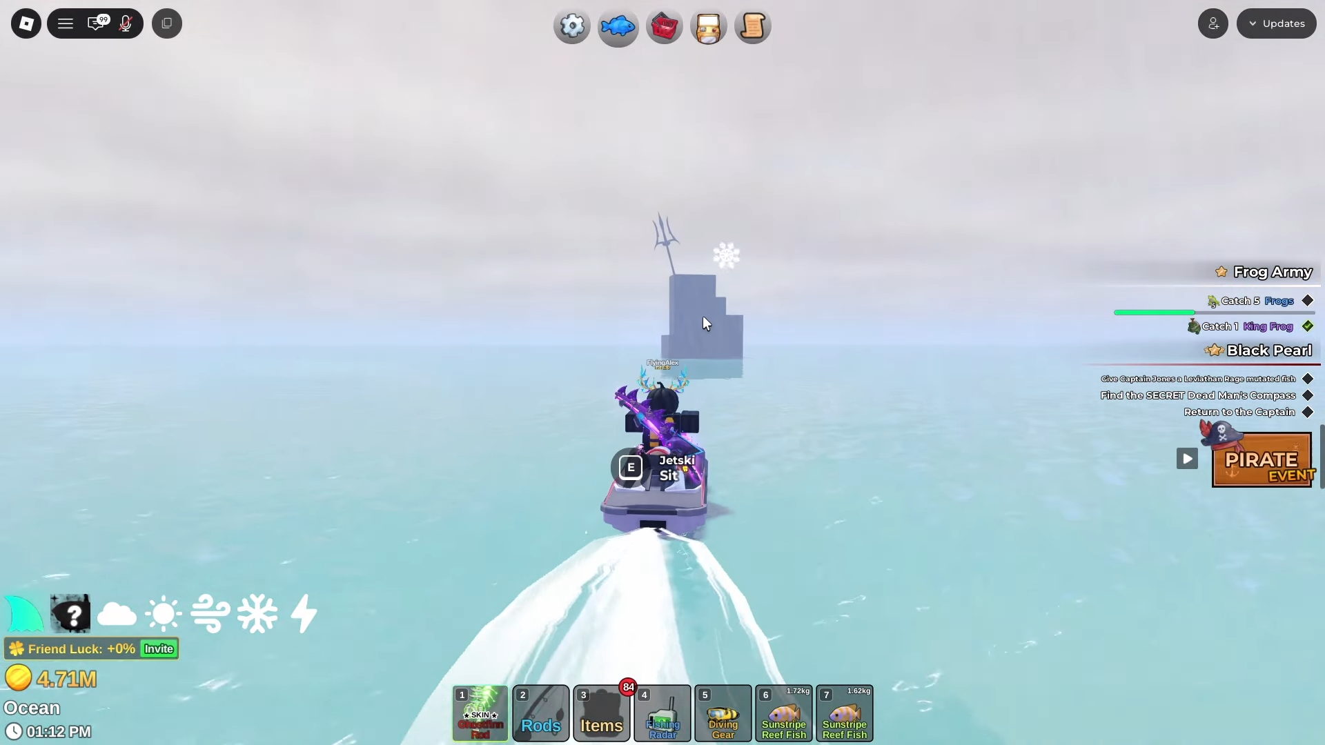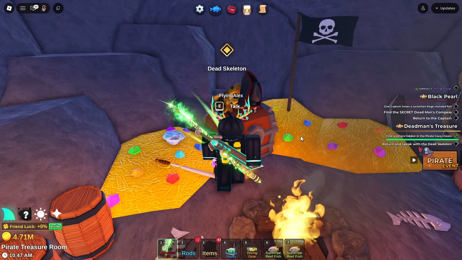 Deliver the compass and mutated fish to Captain Jones on Pirate Cove docks for Black Pearl rewards, tying these items into the event’s core progression amid new fish and secrets.​
